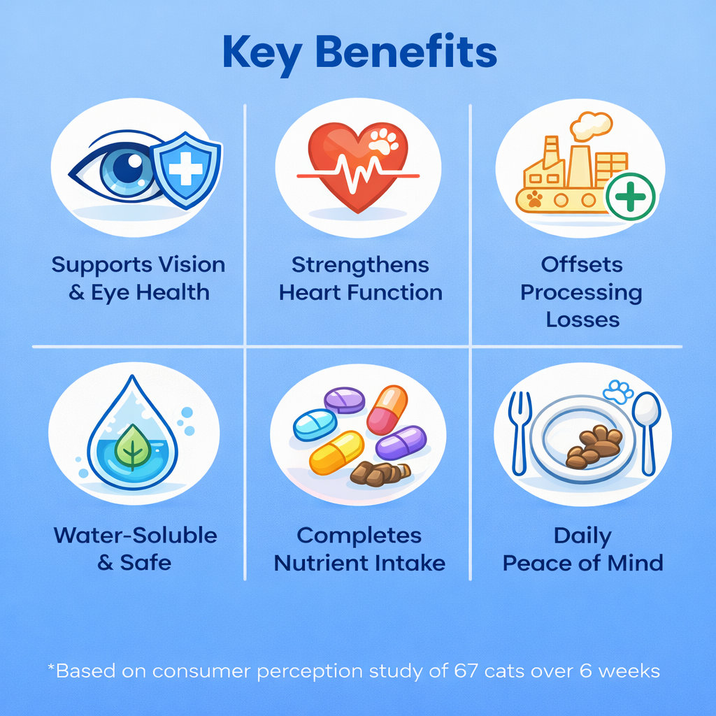 Yes — many cat owners use taurine as a proactive part of their cat’s daily wellness routine. Taurine plays an ongoing role in supporting heart health, vision, and overall vitality, so maintaining healthy levels matters even when your cat seems perfectly fine. Think of it as simple daily nutritional support that helps you stay ahead, not catch up later.